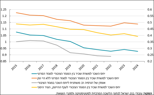 - أحد الأسباب المحتملة للتراجع النسبي في مستوى المهارات الأساسية للعاملين في القطاع العام في إسرائيل هو التراجع النسبي للأجور التي يحصلون عليها.