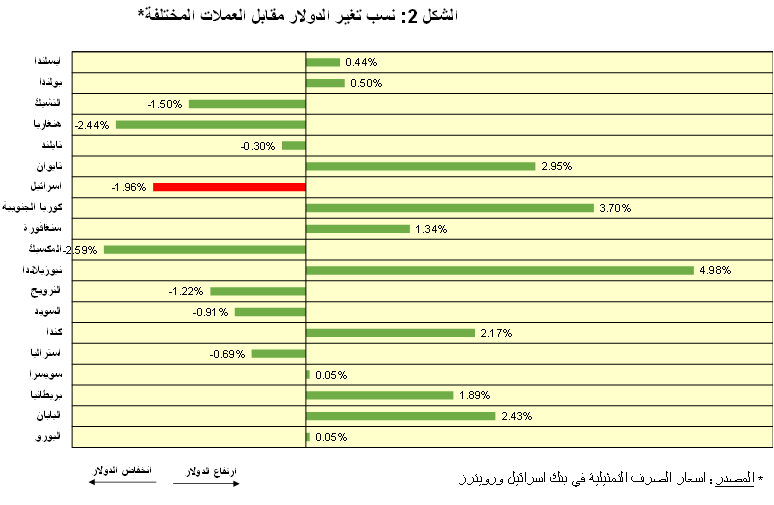 تطور سعر الصرف - ارتفاع قيمة الشيكل إلى جانب التباين في سعر الدولار عالمياً