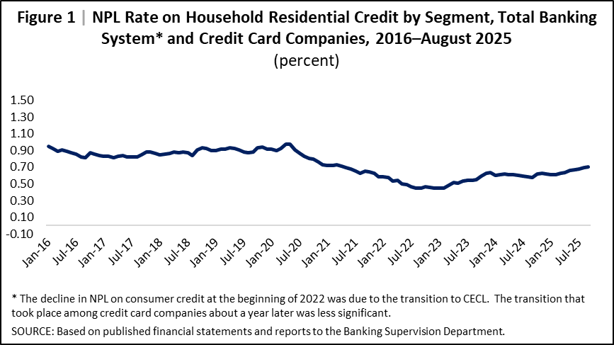 The easing of the burden on mortgage borrowers has also been supported by a range of proactive measures taken by the Bank of Israel in recent years. As early as June 2023, the Bank formulated assistance principles that were adopted by the commercial banks, including measures to reduce the debt burden on mortgage holders. Following the outbreak of the war on October 7, 2023, and throughout its duration, the Bank of Israel developed frameworks that were implemented by the banking system. Among other things, these included the deferral of mortgage payments—without interest or fees—for a wide range of customers directly affected by the war, as well as for reservists. After these frameworks concluded, the Bank of Israel introduced an additional plan in April 2025, which was likewise adopted by the banking system. Under this plan, the banks will provide approximately NIS 3 billion in financial relief to their customers over two years, including through concessions on mortgage products.