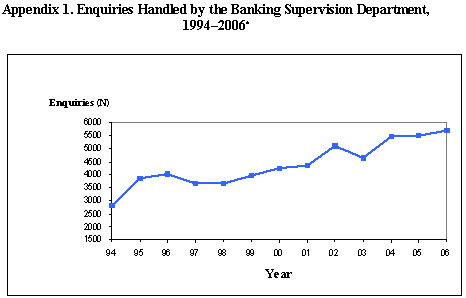 In 2006, the Banking Supervision Department handled 4,176 complaints and 3,092 requests for information and miscellaneous enquiries, to which it responded in writing. |