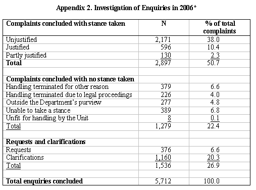 | During 2006, the Banking Supervision Department dealt with 4,176 complaints and 3,092 requests for information and miscellaneous enquiries, many of which originated in lack of knowledge of banking procedures and directives. |