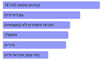 - נטען כי חברות גדולות פחות זקוקות לשירות השקל הדיגיטלי. לכן, בסדר תיעדוף עלות-תועלת לראייתו של אחד המשתתפים, שלושת הגורמים שבעדיפות העליונה הם קטינים מתחת לגיל 16, עובדים זרים - שכן מדובר בקהילה גדולה שעובדת הרבה במזומן - והממשלה.