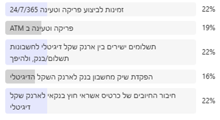 משתתפי הפורום נשאלו אילו יכולות מתקדמות חשובות בשקל הדיגיטלי? להלן התוצאות: