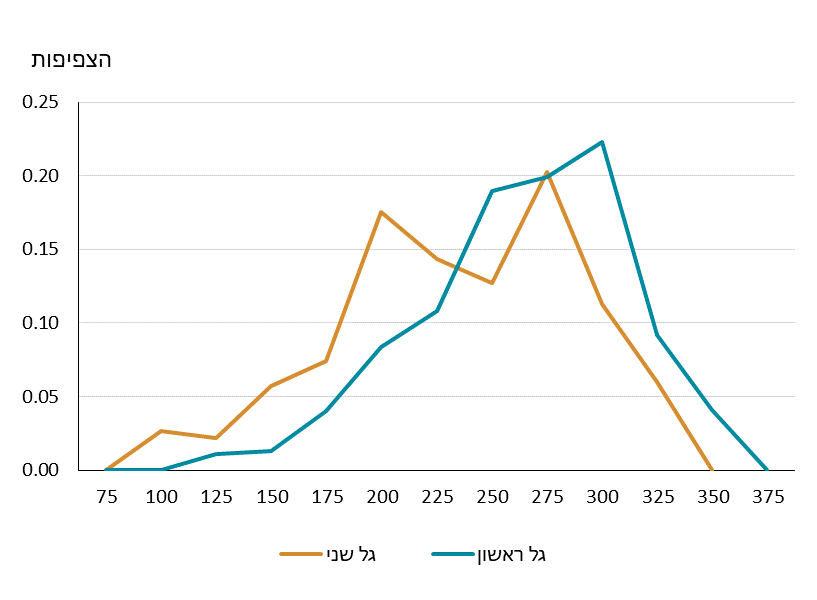 1 בין שני הגלים חלה ירידה, אך פחות חריפה, גם במיומנות הממוצעת במתמטיקה.