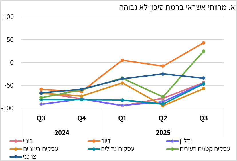 - ברביע השלישי של 2025, חל גידול בביקוש לאשראי של עסקים זעירים וקטנים וירידה בביקוש לאשראי בענפי הנדל"ן והבינוי. לפי המשיבים, שימוש בחלופות מימון הוא הגורם לירידה בביקוש לאשראי בענף הנדל"ן.