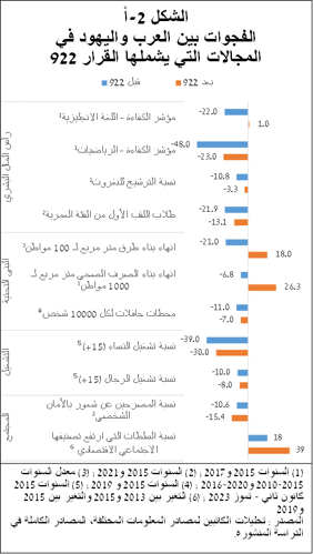 بعد بدء تنفيذ الخطة الخمسية 992، تقلصت الفجوات بين العرب واليهود في العديد من المجالات التي شملتها الخطة: في مجال التعليم، والمشاركة في التعليم العالي، والبنية التحتية والمواصلات العامة وتشغيل النساء (الشكل 2). ساهمت الخطة بشكل كبير في تطوير عمليات التخطيط الحضري في البلدات العربية، والتي تعتبر ضرورية لتطوير هذه البلدات على المدى البعيد. ومع ذلك، لا تزال الفجوات بين اليهود والعرب موجودة في العديد من المجالات الحياتية.
