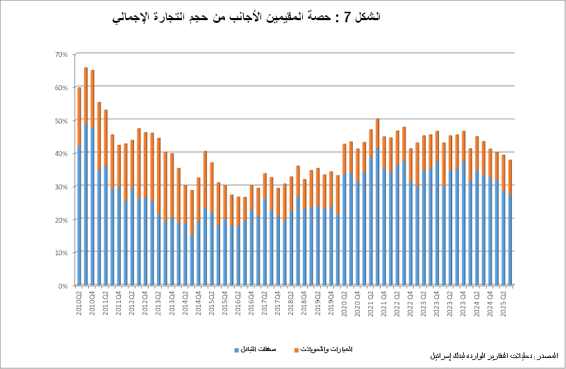 [4] إجمالي حجم التداول هو تقدير لإجمالي النشاط في المعاملات مقابل الشيكل، بناءً على تقارير الجهاز المصرفي المحلي والمصادر الأجنبية..