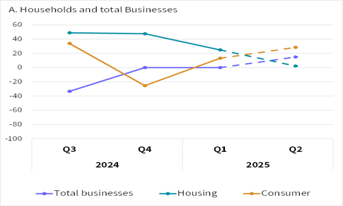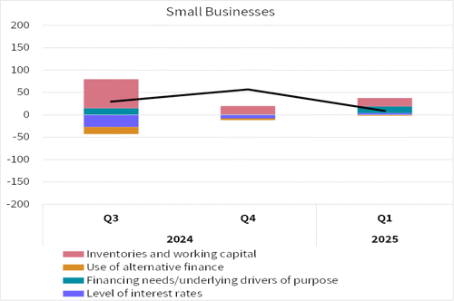 The findings published here are aggregated and pertain to the banking corporations as a whole. They are presented using weighted net balances[1], summarizing the change that occurred in the surveyed quarter compared to the previous quarter, or the expected change in the upcoming quarter compared to the surveyed quarter. The data in the survey were collected from banking corporations during the second half of March 2025.