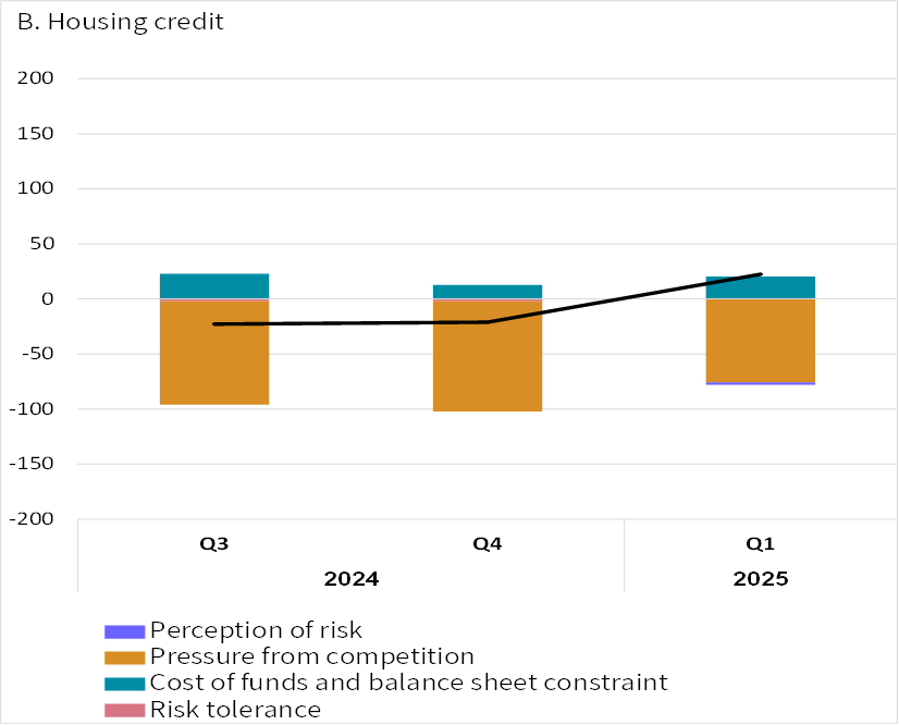 The easing of credit terms and conditions continued in the first quarter of the year across most credit segments, primarily reflected in the credit margins for medium-risk levels. However, there was a noticeable tightening in the credit margins for high-risk housing credit (Figure 3).