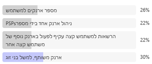 המשתתפים התבקשו לענות על השאלה: אילו פונקציונליויות בניהול ארנק צריכות להיכלל כבר בהשקה ואילו יכולות להידחות להמשך?