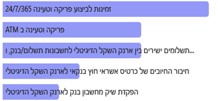 - לגבי הכספומטים, משתתף צופה כי הקבוצות שישתמשו בהם הן בעיקר האוכלוסיות המוחלשות דיגיטלית. מאחר וצריך לספק עבורם פתרון, זו פונקציונלית הכרחית.
