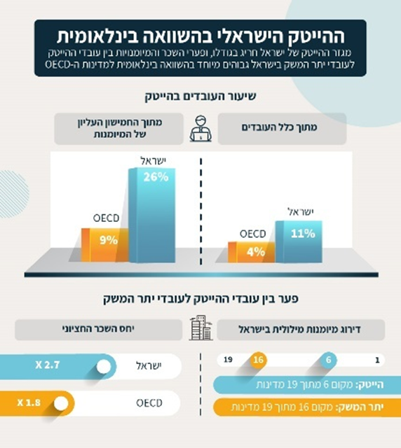 - פערי השכר בין עובדי ההייטק ליתר העובדים במשק התרחבו בעשור האחרון, והם מהגבוהים בקרב מדינות ה־OECD, גם כאשר מביאים בחשבון הבדלים במאפייני העובדים ובמיומנויותיהם.