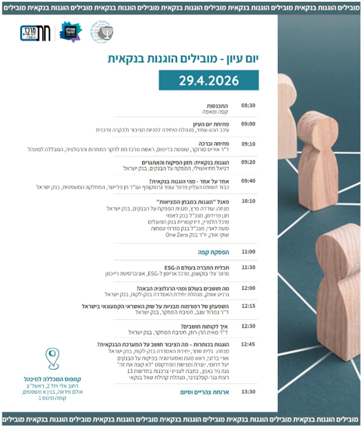 הפיקוח על הבנקים קיים היום, במרכז חת לחקר התחרות והרגולציה במכללה למנהל בראשל"צ, יום עיון מקצועי בנושא 'הוגנות בנקאית'. יום העיון נועד להעמיק את השיח המקצועי סביב מושג ה'הוגנות הבנקאית' בממשקי המערכת עם לקוחותיה כעיקרון מעצב בפעילותה של המערכת הפיננסית המודרנית.