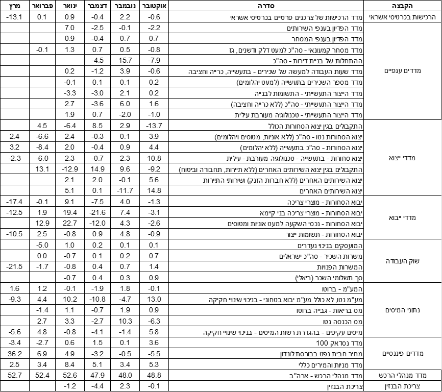 (שיעורי שינוי חודשיים באחוזים, מנוכי עונתיות)